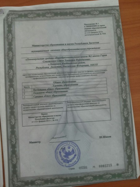 | Адрес местонахождения образовательной организации* | Республика Дагестан Казбековский район с. Ленинаул, улица им. Героя Советского Союза Х. Нурадилова, Дом № 2 "А" индекс 368155 |