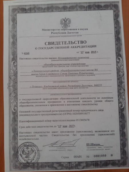 | Полное наименование образовательной организации* | МКОУ «Ленинаульская средняя общеобразовательная школа №1 имени Героя Советского Союза Ханпаши Нурадилова» |